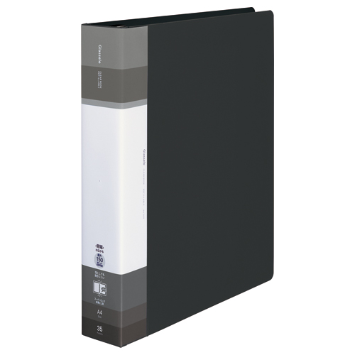 ●替紙式 ●穴数/30穴 ●リング内径/33mm ●表紙・ポケット/PP ●最大収容ポケット枚数/150枚 ●替背紙式 ●中紙なし ●エンボス仕上げポケット ●表紙・ポケット/再生PP ●とじ具と表紙の分別廃棄可能 ※「リベットはずし機」(フーRVT1)で表紙ととじ具を分別することができます。 ※背幅が広くなった場合、外寸法の幅は少し小さくなります。 ●A4タテ ●サイズ/312×282×55~72mm ●仕様:ポケット/35枚 ●色/ブラック