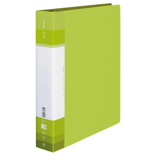 ●替紙式 ●穴数/30穴 ●リング内径/33mm ●表紙・ポケット/PP ●最大収容ポケット枚数/150枚 ●替背紙式 ●中紙なし ●エンボス仕上げポケット ●表紙・ポケット/再生PP ●とじ具と表紙の分別廃棄可能 ※「リベットはずし機」(フーRVT1)で表紙ととじ具を分別することができます。 ※背幅が広くなった場合、外寸法の幅は少し小さくなります。 ●A4タテ ●サイズ/312×282×55~72mm ●仕様:ポケット/35枚 ●色/ライトグリーン