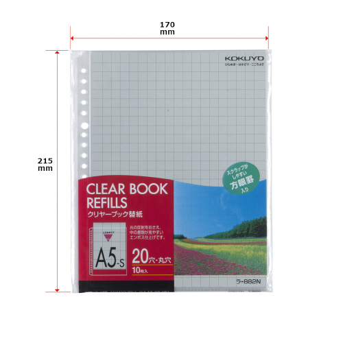 クリヤーブック替紙 A5縦 2・20穴 8mm方眼 10枚入 ラ-882N