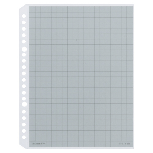 ●エンボス仕上げで光が反射せず、書類が見やすいポケット。多穴・丸穴。エンボス仕上げだから、光が反射せず目にも優しいタイプです。●ポケット内寸/211×155mm●ポケット仕様/エンボス仕上げ・中紙あり●サイズ/215×170mm●2・20穴●グレー8mm方眼罫入り●再生PP●適用品番/コクヨクリヤーブック(ラ-722N)