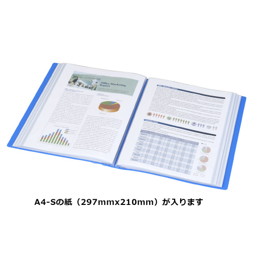 クリヤーブック A4縦 固定式80枚ポケット 青 ラ-B80B