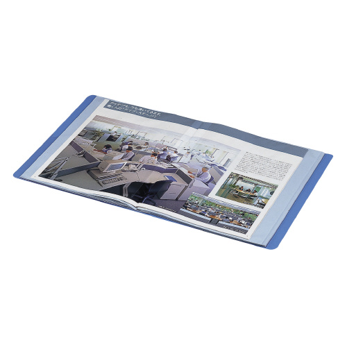●横入れタイプ●倍サイズの大型書類も見開きで収容できます。●資料を内側サイドから出し入れしますので、逆さにしても落ちる心配がありません。●中芯フィルム(カラー)●サイズ/312×247×18mm●固定式 ●PP表紙●替背紙式●タックインデックス付き●表紙ポケット付き●ポケット/20枚(40ポケット)