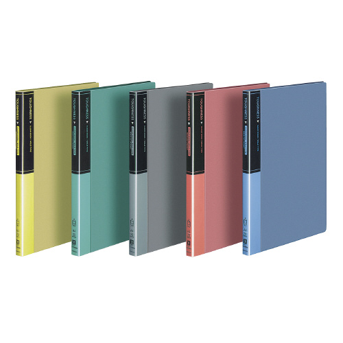 ●ウェーブカットポケットを採用/ポケットに波形のカットが入っているので、紙の出し入れがスムーズにできます。 ●サイズ/312×239×18mm ●表紙/発泡再生PP ●ポケット/再生PP ●固定式 ●発泡PP表紙 ●替背紙式 ●つや消し仕上げポケット ●中紙あり ●ユニバーサルデザイン