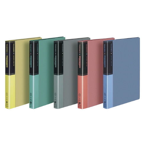 ●ウェーブカットポケットを採用/ポケットに波形のカットが入っているので、紙の出し入れがスムーズにできます。 ●サイズ/312×239×28mm ●表紙/発泡再生PP ●ポケット/再生PP ●固定式 ●発泡PP表紙 ●替背紙式 ●つや消し仕上げポケット ●中紙あり ●ユニバーサルデザイン