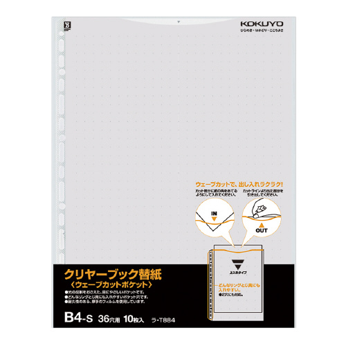 クリヤーブック(ウェーブカット)用替紙 B4縦 36穴 台紙色灰 10枚入 ラ-T884M