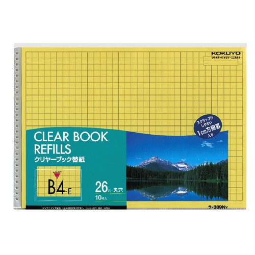 クリヤーブック替紙 B4横 2・26穴 台紙色黄 10枚入 ラ-389NY