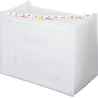 ●中身に応じてファイル幅を調整でき、伸ばしても縮めても自立するドキュメントファイルです。引き出しに入れても使用することができる、便利なドキュメントファイルです。月別整理に便利です。
