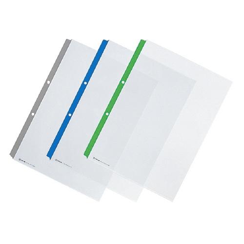 ●ポケットはPP、穴切れを防ぐ補強テープ付きポケット。厚型ファイルにとじ込んで整理分類も可能。 ●A4縦 ●2穴 ●青ライン ●10枚入 ●サイズ/303×230mm ●ポケット内寸/300×214mm ●シート厚み/0.09mm ●ポケット仕様/中紙なし