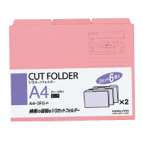 1/3カットフォルダー(6冊入) A4 ピンク A4-3FS-P