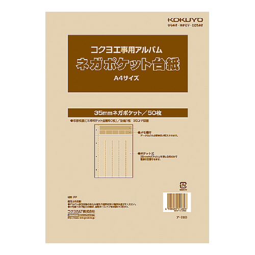 工事用ネガポケット替台紙(ひもとじ) A4 4穴35ミリネガフィルム用台紙 ア-269