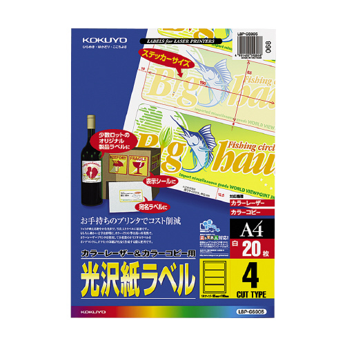 カラーLBP&コピー用光沢紙ラベル A4 20枚入 4面カット LBP-G6905