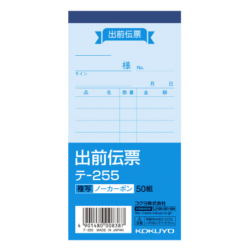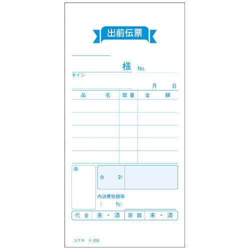 お会計票 出前伝票 134×66mm 50組 テ-255