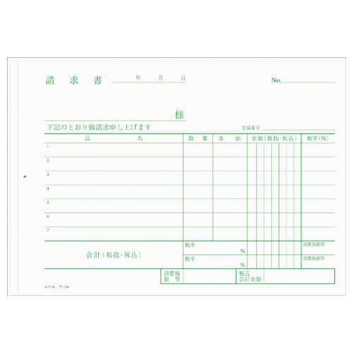 ●2枚目が請求書(緑)、3枚目が納品書、4枚目が物品受領書となります