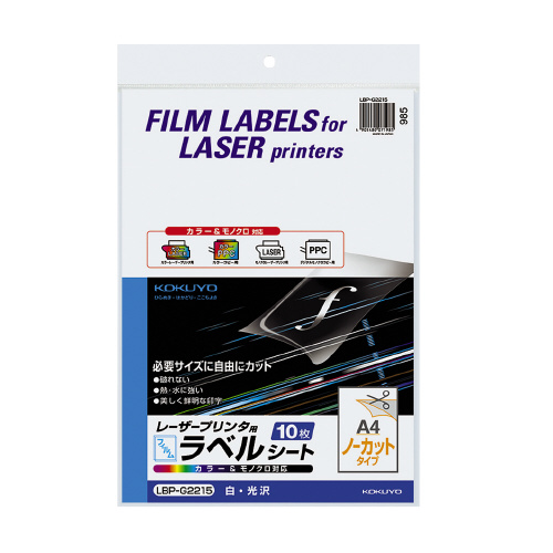 カラーLBP&コピー用フィルムラベル 10枚入 ノーカット 光沢 白