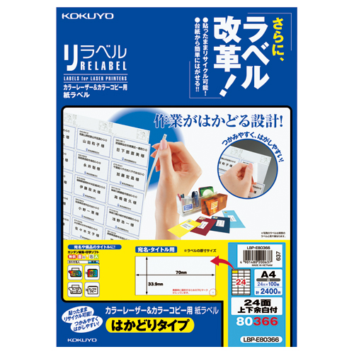 カラーLBP&コピー用ラベル リラベル 24面上下余白付 100枚入