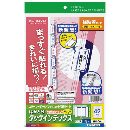 LBP&IJP用タックインデックス 保護フィルム付 A4 42面 5枚 青枠
