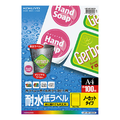 カラーLBP&コピー用耐水紙ラベル A4 100枚入 ノーカット