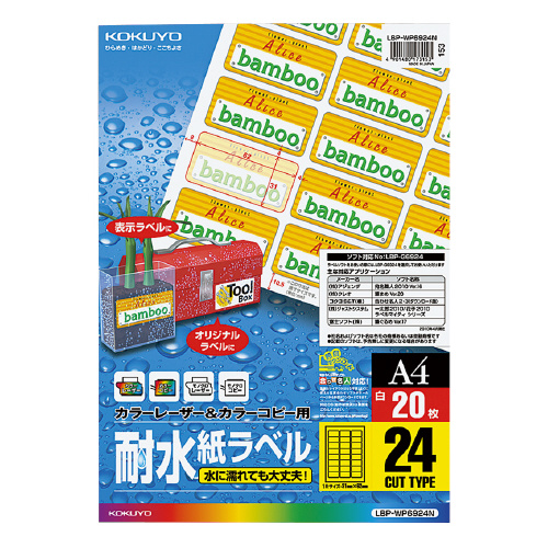 カラーLBP&コピー用耐水紙ラベル A4 20枚入 24面カット