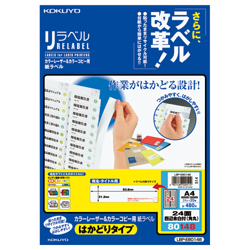 カラーLBP&コピー用ラベル リラベル 24面四辺余白付(角丸) 20枚入