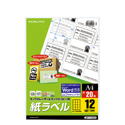 モノクロレーザー用紙ラベル A4 20枚入 12面カット