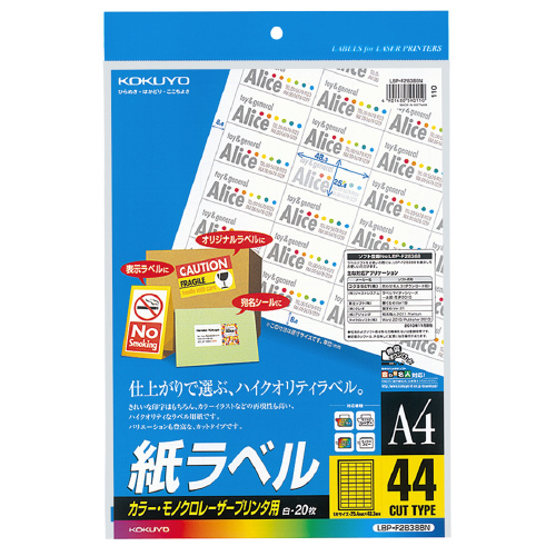 LBP用紙ラベル カラー&モノクロ対応 A4 20枚入 44面カット