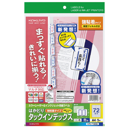 LBP&IJP用タックインデックス 保護フィルム付 A4 72面 5枚 青枠