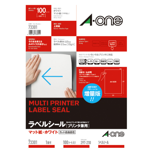 プリンタ兼用ラベルシール A4判 ノーカット1面 100シート