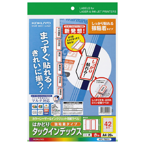 LBP&IJP用タックインデックス 強粘着 A4 42面(大) 20枚 赤枠