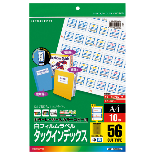 LBP&コピー用タックインデックス フィルムラベル A4 56面 中 青枠