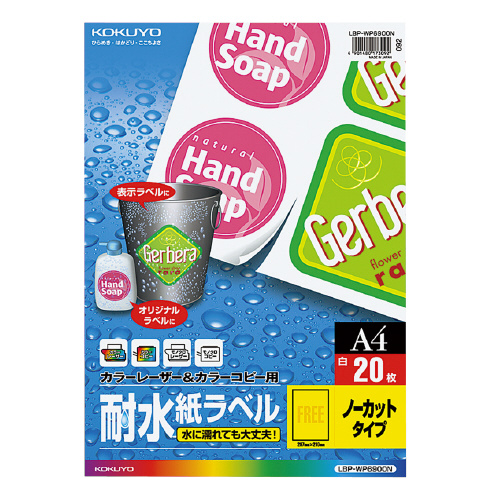 カラーLBP&コピー用耐水紙ラベル A4 20枚入 ノーカット