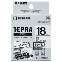 テプラPROテープカートリッジ キレイにはがせる 白に黒文字 18mm幅 SS18KE