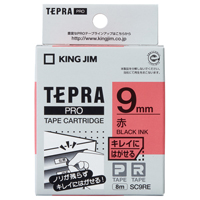 テプラPROテープカートリッジ キレイにはがせる 赤に黒文字 9mm幅 SC9RE