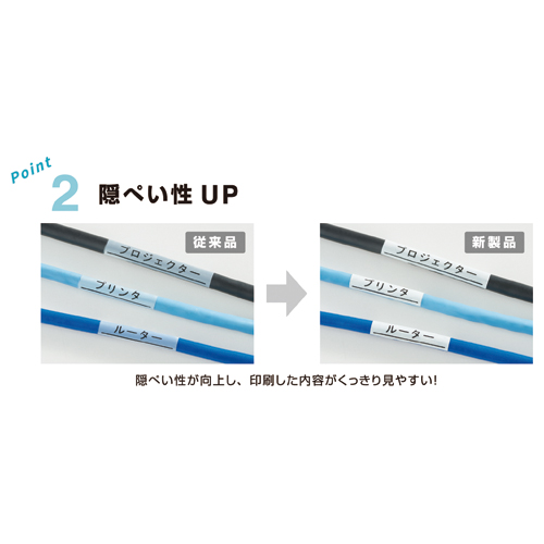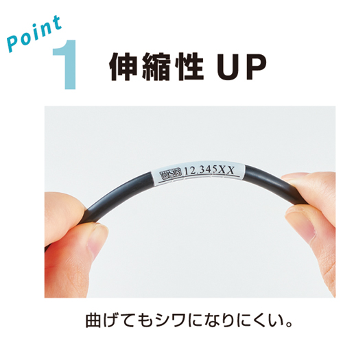 ●ラベルの白地部分に印刷し、透明部分を巻きつける「セルフラミネート」タイプなので、汚れなどから印刷部分を保護します。