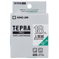 テプラPROテープカートリッジ 上質紙ラベル 白に黒文字 18mm幅 SP18K