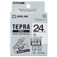 テプラPROテープカートリッジ 強粘着ラベル 白に黒文字24mm幅×8m SS24KW