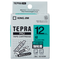 テプラPROテープカートリッジ 強粘着ラベル 緑に黒文字12mm幅×8m SC12GW