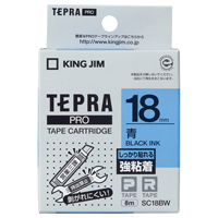テプラPROテープカートリッジ 強粘着ラベル 青に黒文字18mm幅×8m SC18BW