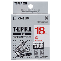 テプラPROテープカートリッジ 強粘着ラベル 白に赤文字18mm幅×8m SS18RW