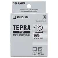 テプラPROテープカートリッジ 透明ラベル 透明に白文字12mm幅×8m ST12S