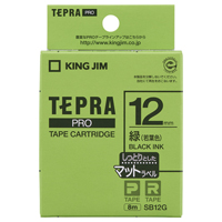 テプラPROテープカートリッジ マットラベル 緑に黒文字12mm幅×8m SB12G