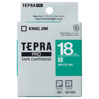 テプラPROテープカートリッジ (ビビッド) 緑に白文字18mm幅×8m SD18G
