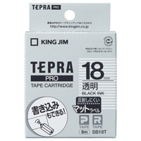 テプラPROテープカートリッジ マットラベル透明に黒文字18mm幅×8m SB18T