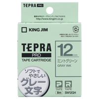 テプラPROテープカートリッジ (ソフト) ミントグリーンにグレー文字 SW12GH