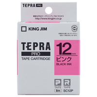 テプラPROテープカートリッジ (パステル) ピンクに黒文字 12mm幅 SC12P
