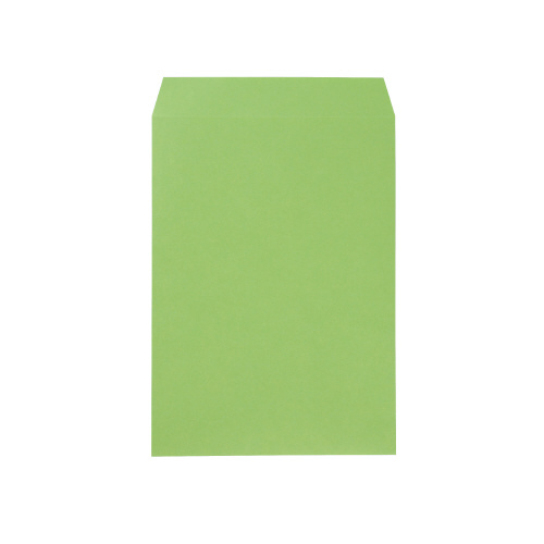●鮮やかなカラークラフト封筒 ●中身が透けにくく、個人情報保護にも安心 ●角形2号 ●サイズ/240×332mm ●グリーン ●紙厚85g/平方メートル ●100枚入り ●〒枠無 ●サイド貼り ●古紙配合紙