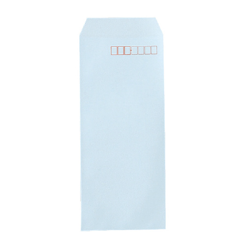 ●長形4号 ●サイズ/90×205mm ●ブルー ●紙厚80g/平方メートル ●100枚入り ●〒枠付 ●サイド貼り ●古紙配合紙