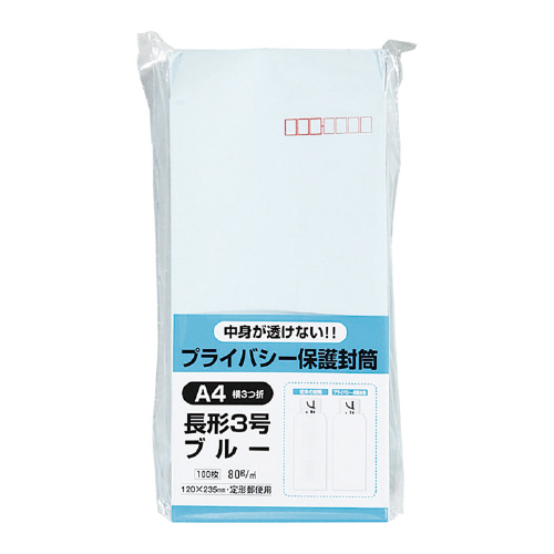 プライバシー保護封筒 長3 100枚入 ブルー 〒枠付 N3PB100B