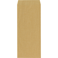 ●簡単な連絡用に最適!筋入クラフト封筒100枚パック ●薄手の封筒ですので、郵便へはご使用できません ●長形4号 ●サイズ/90×205mm ●紙厚32g/平方メートル ●100枚入り ●〒枠無 ●センター貼り