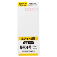 ●長形4号 ●サイズ/90×205mm ●紙厚70g/平方メートル ●100枚入り ●〒枠付 ●センター貼り ●紙質/白封筒用紙(ケント)