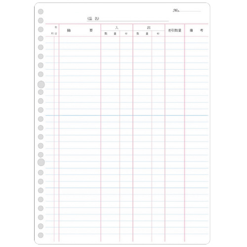 三色刷りルーズリーフ B5 物品出納帳B 100枚入 リ-115